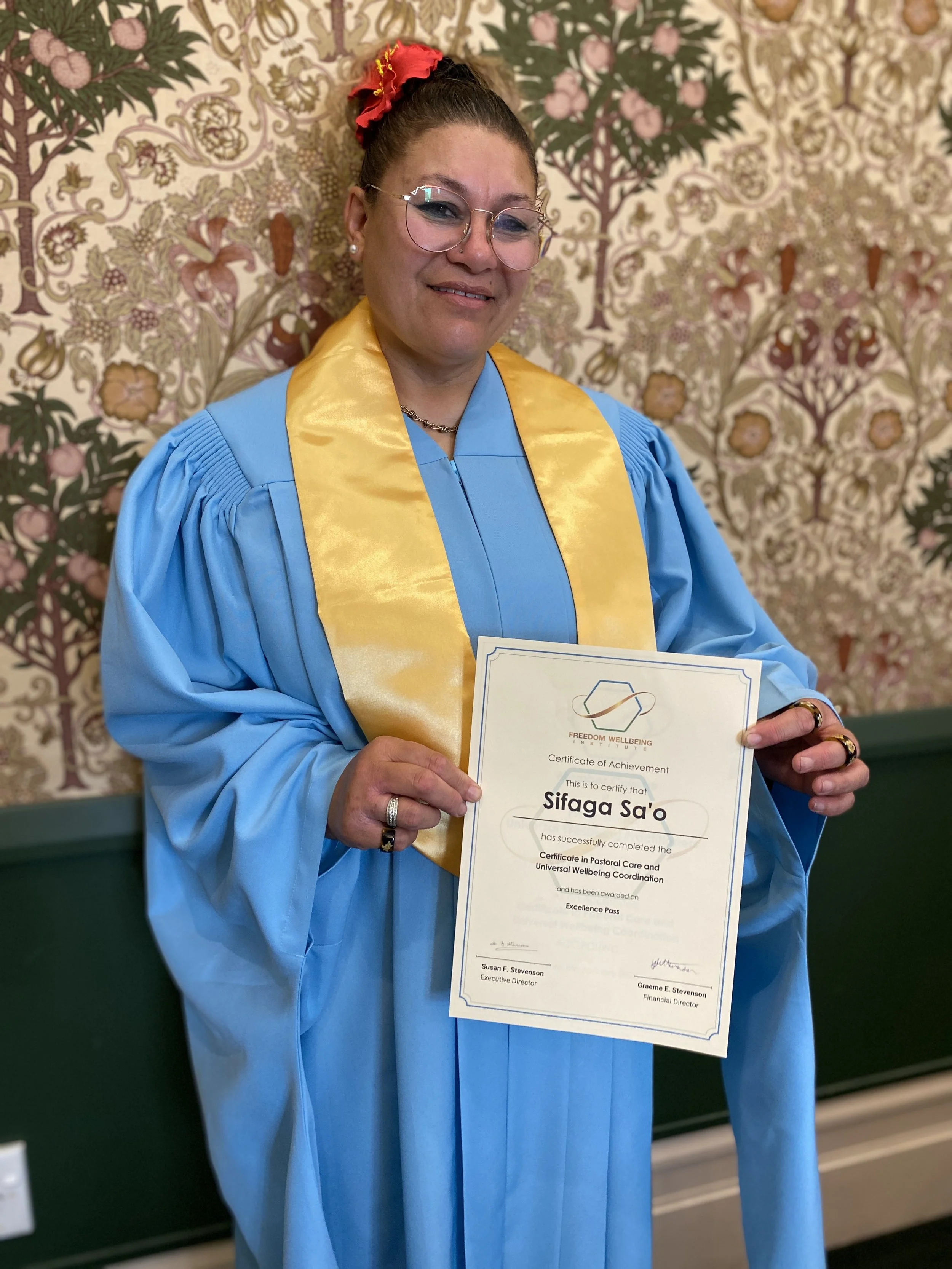Through the FREE Research & Educational Equity Trust, Sifaga was awarded a Professional Universal Wellbeing Scholarship and began the Certificate in Pastoral Care & Universal Wellbeing Coordination.